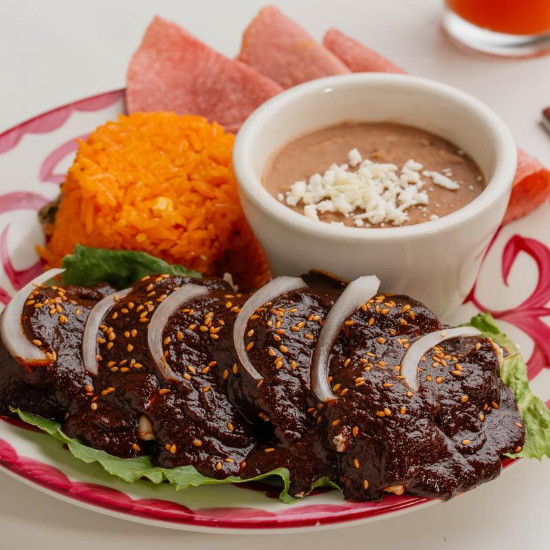 Tender chicken breast drenched in our rich, scratch-made mole sauce - smokey, spicy chiles, roasted spices, and a hint of chocolate. Slow-simmered to develop layers of flavor and just the right amount of heat. Served with a